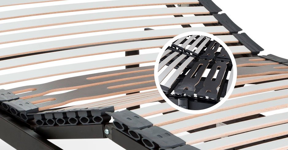 Tipología de láminas especializadas que evitan deslizamientos y absorben el peso usando los diferentes planos de articulación. Sus tacos basculantes adaptan el somier a tu colchón evitando ángulos rectos